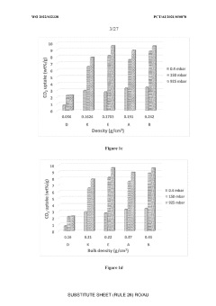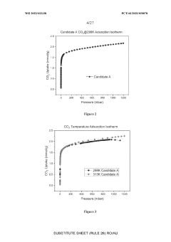 Strengths: High CO2 adsorption capacity (3-4 mmol/g); relatively low regeneration temperature requirements; excellent stability over multiple cycles (>1000 cycles with <10% capacity loss); integration with existing industrial infrastructure. Weaknesses: Performance degradation in the presence of moisture and SOx/NOx contaminants; energy intensity of the regeneration process still presents efficiency challenges; manufacturing scale-up complexity for specialized hierarchical materials.