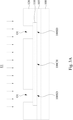 Two-dimensional semiconductor materials demonstrate exceptional optical properties including strong light-matter interactions, high absorption coefficients, and photoluminescence. These properties make them suitable for applications in photodetectors, light-emitting diodes, photovoltaics, and integrated photonics. The direct bandgap nature of many 2D semiconductors enables efficient light emission and absorption. Additionally, their optical properties can be tuned through layer thickness, strain, and electric fields, allowing for customizable photonic devices.Expand Specific Solutions04 Mechanical and thermal properties of 2D semiconductor materials