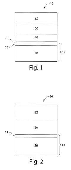Surface passivation layers are essential for protecting GaN transistors from environmental degradation and for stabilizing device performance. Materials such as silicon nitride (SiN), silicon dioxide (SiO2), and aluminum oxide (Al2O3) are commonly used for passivation. These materials help reduce surface states, prevent current collapse, and improve reliability. The passivation layer thickness and deposition method significantly affect device characteristics. Advanced passivation schemes may employ multiple dielectric layers or in-situ passivation techniques to minimize interface traps and enhance long-term stability.Expand Specific Solutions