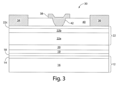 Buffer and transition layers play a crucial role in GaN transistor fabrication by managing lattice mismatch between the substrate and active GaN layers. These layers typically include AlN, AlGaN, or graded composition layers that help reduce defect density and improve crystal quality. Properly designed buffer layers minimize strain, prevent cracking, and enhance electron mobility in the device. Advanced buffer layer architectures can include multiple layers with varying compositions to gradually transition from the substrate to the active GaN region.Expand Specific Solutions03 Barrier layer materials and compositions