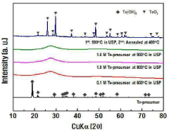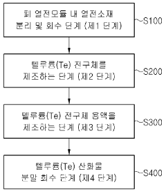 - A method involving a four-step process: separating thermoelectric materials from waste modules at high temperatures, dissolving in hydrogen peroxide, preparing a tellurium precursor solution, and recovering tellurium oxide through ultrasonic spray pyrolysis and annealing, without using strong acids/strong bases.