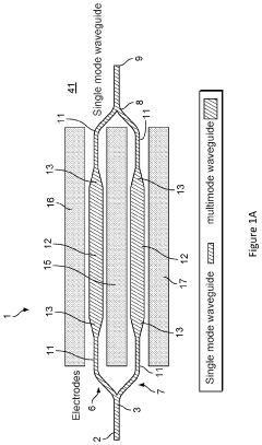 The choice of materials and their processing methods significantly impact waveguide losses. High-purity materials with low absorption coefficients are preferred for the core and cladding layers. Advanced deposition techniques, annealing processes, and surface treatments can reduce scattering losses by minimizing defects and roughness at interfaces. Novel composite materials and doping strategies can also be employed to achieve lower propagation losses.Expand Specific Solutions03 Coupling and junction loss reduction techniques