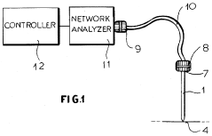 - A coaxial dielectric probe with an inner and outer conductor, having an outside diameter of less than 1 mm, allowing for real-time measurement of dielectric properties by transmitting and analyzing electromagnetic radiation, enabling spatial resolution for distinguishing between adjoining regions and allowing insertion into semi-rigid materials for depth profiling.
