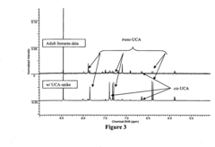 - The use of metabonomics, specifically through techniques like NMR, mass spectrometry, and chromatographic methods, to compare biomarkers from challenged skin to control skin, identifying changes and assessing the efficacy of treatments by analyzing biomarkers such as urocanic acid, and creating predictive models for skin health based on known skin samples.