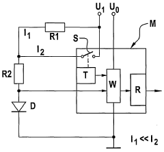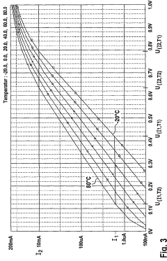 - A method involving the measurement of forward voltages across a pn junction at different currents, using an A/D converter, controllable switch, and arithmetic circuit to calculate voltage and temperature values, with parameters and proportionality factors stored in the circuit for generating adjustable temperature-dependent voltages.