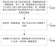 - By collecting all the light points in the target area of the display screen and a predetermined number of image data representing the light points, the fuzzy sub-area is determined and restored in the first image data to obtain clear third image data, realizing the fuzzy area of recovery.