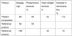 - A blend of inorganic coagulants, such as iron and aluminum compounds, and organic water-soluble polymers, like anionic, cationic, and nonionic polymers, is added to the influent of membrane bioreactors to enhance phosphorus precipitation and permeate flux, improving membrane performance and water treatment efficiency.