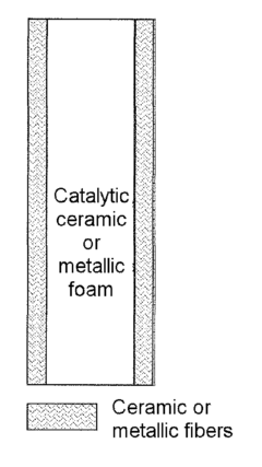 - Incorporating a second structure in the annular space between the cellular architectures and the reaction chamber wall, such as a fibrous structure, a metal collar with fins, or metallic/ceramic powder, to enhance contact and adapt to dimensional variations, improving heat transfer and flow distribution.