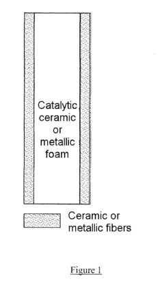 - 01 Metal foam catalysts for emission controlMetal foams can be used as catalytic substrates for emission control systems, particularly in automotive applications. These foams provide high surface area and excellent heat transfer properties, enhancing catalytic performance for the reduction of harmful exhaust gases. The open-cell structure of metal foams allows for efficient gas flow and contact with catalytic materials, resulting in improved conversion efficiency of pollutants such as NOx, CO, and hydrocarbons.- Metal foam catalysts for emission control: Metal foams can be used as catalytic substrates for emission control systems, particularly in automotive applications. These foams provide high surface area and excellent heat transfer properties, making them effective for catalytic converters. The open-cell structure allows for efficient gas flow while maintaining good contact between exhaust gases and catalytic materials, resulting in improved conversion efficiency of harmful emissions to less harmful substances.