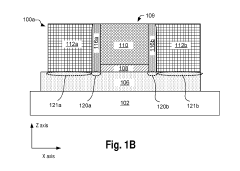 Technical Solution: Semiconductor Energy Laboratory (SEL) has pioneered CAAC-IGZO (c-axis aligned crystalline indium-gallium-zinc oxide) technology for metal oxide TFTs. Their proprietary crystalline structure offers superior stability compared to conventional amorphous IGZO, with electron mobility exceeding 10 cm²/Vs while maintaining low off-state current below 10^-13 A. SEL has developed self-aligned top-gate structures that reduce parasitic capacitance by approximately 30%, enabling faster switching speeds for high-resolution displays. Their oxide semiconductor technology incorporates hydrogen barriers and specialized annealing processes that significantly reduce threshold voltage shift under bias stress conditions, extending device lifetime by over 50% compared to first-generation metal oxide TFTs. SEL's licensing model focuses on fundamental IP for oxide semiconductor composition and fabrication processes, with over 200 patents specifically covering IGZO implementation.