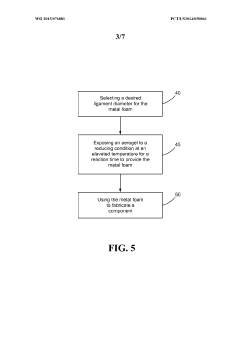 Technical Solution: United Technologies Corporation has developed a comprehensive metallurgical approach to metal foam fabrication specifically engineered for aerospace applications. Their proprietary process combines direct foaming techniques with advanced powder metallurgy to create high-performance aluminum, titanium, and nickel-based foams. UTC's technology utilizes precisely controlled gas injection into molten metal with specialized stabilizing agents to achieve uniform cell structure and density. Their metallurgical innovation includes tailored alloy compositions that optimize both mechanical properties and processing characteristics during foam formation. The corporation has implemented advanced solidification control systems that manage cooling rates to enhance cell wall integrity and overall structural performance. UTC has also developed specialized post-processing treatments including heat treatment cycles and surface modifications that significantly improve fatigue resistance and corrosion protection in aerospace environments. Their metal foams demonstrate exceptional vibration damping capabilities, with up to 10 times higher damping capacity than solid metals while maintaining 70-80% weight reduction. Recent advancements include functionally graded foams that provide optimized performance across thermal and mechanical load paths in aircraft components.