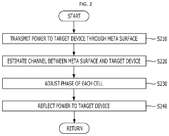 - A method utilizing a metasurface with N cells, where the metasurface estimates a channel based on received power and a property matrix, adjusts the phase of each cell, and reflects power to a target device using a phase adjusting unit that sets reflection coefficients to 0° or 180°, enabling efficient beamforming and power transmission.