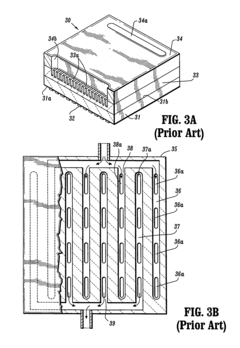 Specialized coolant formulations can significantly improve microchannel cooling efficiency. These advanced fluids may incorporate nanoparticles, phase-change materials, or additives that enhance thermal conductivity and heat capacity. Some formulations are designed to modify surface tension or viscosity characteristics to optimize flow behavior within microchannels. Temperature-responsive coolants can adapt their properties based on thermal conditions, providing more efficient heat transfer at different operating points while preventing issues like channel clogging or corrosion.Expand Specific Solutions04 Multi-layer and 3D microchannel architectures