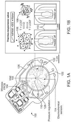 Microfluidic sweat management systems can incorporate various sensors to analyze sweat composition in real-time. These sensors may detect electrolytes, metabolites, hormones, and other biomarkers present in sweat. By integrating electrochemical, optical, or impedance-based sensors directly into the microfluidic platform, these systems can provide continuous monitoring of physiological parameters while maintaining consistent sample collection and analysis conditions.Expand Specific Solutions04 Temperature and environmental control mechanisms