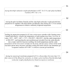 - A polyvinylidene fluoride/ultra-high molecular weight polyethylene blend microporous membrane is prepared using a combination of thermally induced phase separation and micro-injection molding, with a micro-prism array structure and surface modification by magnetron sputtering, to achieve improved hydrophobicity, mechanical strength, and permeability.