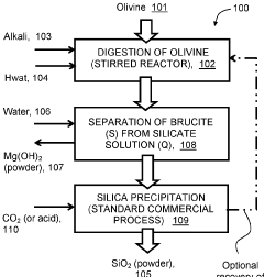 - Direct use of naturally occurring minerals (Olivine or Serpentine) as magnesium silicate source.