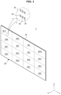 Technical Solution: TCL CSOT has pioneered cost-effective Mini LED solutions through their "Vidrian Mini-LED Technology" that integrates the backlight directly into a glass substrate. Their approach reduces the overall display thickness while improving optical performance. TCL's manufacturing process involves direct mounting of tens of thousands of Mini LEDs (typically sized between 50-200 micrometers) onto a TFT glass substrate, which enables more precise control over local dimming zones. Their cost optimization strategy includes developing standardized Mini LED modules that can be used across different display sizes, reducing development and manufacturing costs. TCL has also implemented an innovative "active matrix" driving method that reduces the number of driver ICs required, lowering component costs by approximately 15-20% compared to passive matrix approaches. Their displays typically feature 1000+ dimming zones with peak brightness exceeding 1500 nits.
