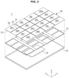 Energy consumption significantly affects the overall cost-effectiveness of display technologies. Mini LED displays offer improved energy efficiency through precise local dimming and optimized backlighting systems, while thermionic displays may provide energy advantages in certain usage scenarios. Innovations in power management systems, low-power driving circuits, and energy-efficient materials contribute to reduced operational costs over the display lifetime, enhancing the long-term economic viability of these technologies.Expand Specific Solutions05 Modular design approaches for cost-effective display manufacturing