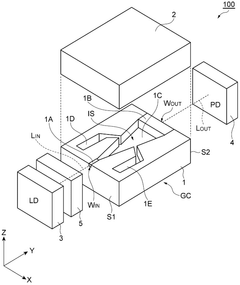 Technical Solution: CSEM has pioneered a distinctive approach to miniature atomic beam clocks through their patented microfabricated double-resonance rubidium atomic clock technology. Their design features a microfabricated alkali vapor cell with buffer gas, created using anodic bonding of silicon and glass wafers. The vacuum requirements are maintained at approximately 10^-7 Torr using innovative getter materials integrated directly into the cell structure. CSEM's approach employs a unique light-induced atomic desorption (LIAD) technique to control vapor density without excessive heating, significantly reducing power consumption. The physics package incorporates a miniaturized magnetron cavity resonator with dimensions optimized for the hyperfine transition frequency of rubidium. This design achieves frequency stability of 3×10^-12 at 1000 seconds while consuming only about 150 mW of power. The entire physics package is contained within a volume of approximately 10 cm³, making it suitable for portable applications requiring precise timing. CSEM has also developed specialized fabrication processes that enable mass production while maintaining the stringent vacuum integrity required for long-term operation.