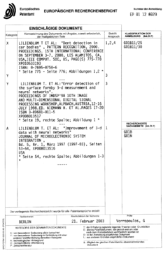 - A method using an artificial neural network to process image data from a matrix camera, projecting patterns onto the object surface, and determining characteristic numbers from gray value sequences to generate a virtual master part without defects, allowing for automatic detection of small errors without explicit 3D data calculation, reducing adjustment effort and eliminating the influence of shape variations.