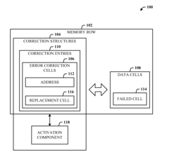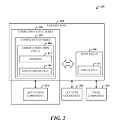 - The implementation of error correcting pointers (ECPs) within a memory row that point to failed cells and pair them with replacement cells, along with wear-leveling mechanisms, to correct faults and extend memory lifetimes without significant performance impact or additional power consumption.