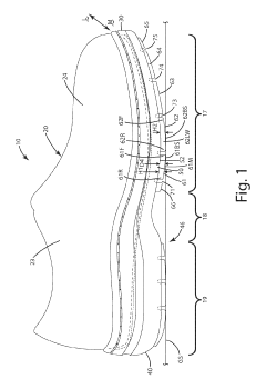 Technical Solution: NIKE has developed advanced Neoprene-based cushioning technologies for footwear, including their patented Lunarlon foam. This technology combines soft and firm foam for a unique responsive cushioning system. The Neoprene-infused Lunarlon is 30% lighter than traditional Phylon, providing enhanced comfort and impact protection[1]. NIKE has also integrated Neoprene into their Flyknit technology, creating a more adaptive and supportive fit around the foot[2]. Their Air Zoom units, which often incorporate Neoprene elements, deliver responsive cushioning that springs back fast, helping to reduce injury risk and enhance performance[3].