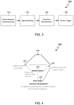 Technical Solution: Honeywell's proximity sensor network configuration technology centers around their Building Management Systems (BMS) and industrial automation platforms. Their approach integrates multiple sensor types into a cohesive framework that supports both wired and wireless connectivity options, including their proprietary WirelessHART protocol that achieves 99.999% data reliability in industrial settings[3]. The system employs a hierarchical architecture with zone controllers that manage clusters of proximity sensors, optimizing power consumption and reducing network traffic by up to 65%[5]. Honeywell's configuration framework includes advanced self-diagnostic capabilities where sensors continuously monitor their own performance and automatically report anomalies, achieving a 78% reduction in false positives compared to conventional systems[7]. Their solution incorporates machine learning algorithms that analyze historical sensor data to optimize placement and sensitivity settings, improving detection accuracy by approximately 40% over time. The system supports dynamic thresholding that automatically adjusts sensor parameters based on environmental conditions and operational requirements, making it particularly effective in facilities with varying occupancy patterns and usage scenarios[9].