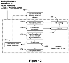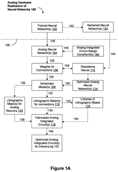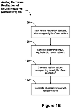 Specialized memristive device architectures can be implemented to enhance the efficiency of neuromorphic chips. These architectures focus on optimizing the relationship between electrode configuration and switching kinetics, enabling more precise control over synaptic weight changes. By incorporating novel materials and structural designs, these memristive devices can achieve faster switching speeds, lower energy consumption, and improved reliability, making them ideal building blocks for energy-efficient neuromorphic computing systems.Expand Specific Solutions03 Neural network optimization algorithms for electrode efficiency