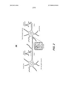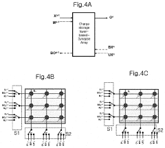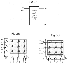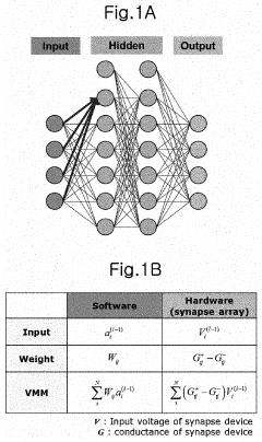 Memory-computation integration represents another critical metric, with patents focusing on minimizing data movement between storage and processing units. In-memory computing approaches, where synaptic weights are stored directly within computational elements, have demonstrated energy savings of 2-3 orders of magnitude in specific workloads compared to conventional architectures that separate memory and computation.