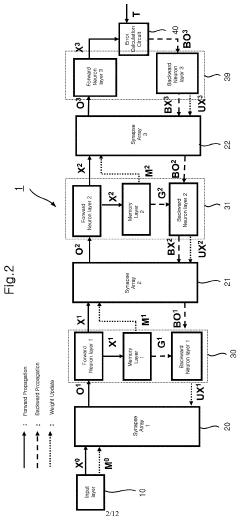 Scaling efficiency metrics are increasingly important as neuromorphic designs move toward larger networks. Patent trends indicate growing interest in hierarchical power management schemes that optimize energy consumption across different network layers and activity levels. These innovations enable more graceful performance degradation under power constraints rather than catastrophic failure.