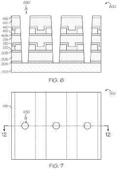 - A vertical ECRAM structure is fabricated inside a trench, with a method involving the deposition of horizontal electrodes, insulating layers, and electrolyte material, followed by metal filling and dielectric passivation to encapsulate the electrolyte, allowing for 3D vertically stacked arrays and increased packing density.