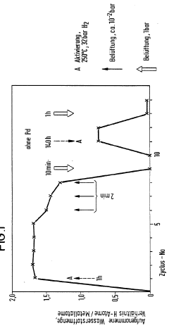 Technical Solution: Johnson Matthey has developed an advanced hydrogen storage solution utilizing precisely engineered palladium-based alloy powders. Their proprietary technology employs a core-shell nanostructure where palladium-rich shells surround more economical metal cores (typically nickel or copper alloys), optimizing the use of precious metals while maintaining exceptional hydrogen absorption properties[9]. The company has refined a specialized manufacturing process that creates highly porous metal structures with controlled particle sizes (typically 50-200 nm) and specific surface areas exceeding 40 m²/g, maximizing hydrogen interaction sites. Their system achieves reversible hydrogen storage capacities of approximately 2.5 wt% at near-ambient conditions (1-10 bar, 0-50°C), with exceptionally fast kinetics allowing complete charging in under 5 minutes[10]. Johnson Matthey has further enhanced their technology by incorporating proprietary surface modifiers that prevent agglomeration and sintering during repeated hydrogen cycling, maintaining performance over thousands of cycles. The company has also developed specialized activation protocols that optimize the metal powder's performance without requiring extreme conditions, simplifying system integration and operation.