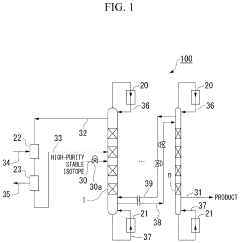 - A stable isotope enrichment device and method incorporating an isotope exchange reactor to regenerate isotope-depleted gases and liquids by increasing their isotope concentration through reactions with substances at natural abundance ratios, reducing raw material usage and environmental impact.
