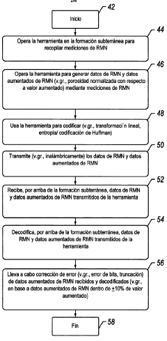 - A method and system for generating and encoding NMR data in underground formations, followed by error correction using augmented NMR data and decoding above ground, employing techniques like linear transformation and entropy encoding, along with bit and truncation error correction mechanisms.