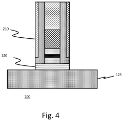 Thermal stability is a critical factor affecting the noise and variability in SOT MRAM arrays. Various approaches can be used to enhance thermal stability, including the development of materials with higher magnetic anisotropy, optimized layer structures, and thermal management techniques. By improving thermal stability, the retention time of stored data can be increased, and the susceptibility to thermal noise can be reduced, resulting in more reliable memory operation.Expand Specific Solutions04 Circuit design strategies for SOT MRAM arrays