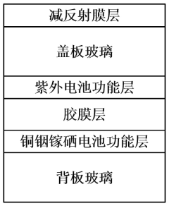 - A UV battery functional layer is formed on the inner surface of the cover glass of a copper indium gallium selenide solar cell. The transparent electrode layer and zinc oxide film layer are prepared using a chemical solution method. Combined with the anti-reflection film layer, a battery design with multiple colors and long life can be achieved.
