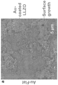 - Solid electrolyte composition and structure: The composition and structure of solid electrolytes play a critical role in lithium nucleation and plating uniformity. Materials with high ionic conductivity, good mechanical properties, and chemical stability against lithium metal are preferred. Composite solid electrolytes, ceramic-polymer hybrids, and nanostructured materials can be engineered to guide lithium ion transport pathways. The grain boundaries, crystallinity, and porosity of solid electrolytes can be tailored to promote uniform lithium deposition and suppress dendrite propagation.