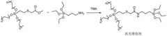 - Intermediate 2 was prepared by using an independently developed high-gloss compatibilizer to prepare intermediate 1 by substitution of n-alkyl alcohol and vinyl trichlorosilane. Intermediate 2 was prepared by initiating addition between unsaturated double bonds between methyl thioglycolate and intermediate 1. Finally, the high-gloss compatibilizer was prepared by amine ester transesterification of γ-aminopropyltriethoxysilane and terminal methyl ester of intermediate 2. During the heating and kneading process of this high-light compatibilizer, the ethoxysilane structure is hydrolyzed and coupled, and multiple alkyl chains are introduced to reduce the winding of nylon macromolecular chains, promote the nucleation and crystallization of nylon molecules on the surface of glass fibers, reduce the interface between high-crystal zones and low-crystal zones, and improve gloss.