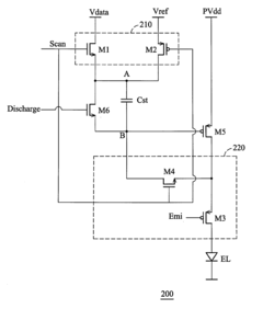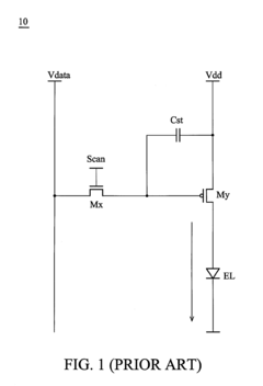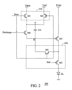 Innovations in OLED and AMOLED display technologies have focused on improving power efficiency to reduce operational costs. These improvements include optimized pixel structures, advanced driving schemes, and enhanced light emission efficiency. By reducing power consumption, these technologies not only extend battery life in portable devices but also lower the total cost of ownership for consumers and commercial applications.Expand Specific Solutions03 Pixel circuit designs for cost-effective AMOLED displays