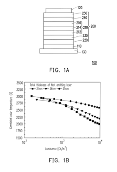Color management systems in OLED and MicroLED displays utilize advanced algorithms and hardware solutions to achieve wider color gamuts and more accurate color reproduction. These techniques include color filters, quantum dot enhancement films, and specialized pixel architectures. By precisely controlling the spectral output of individual light-emitting elements, these technologies can produce more vibrant and accurate colors. Some implementations also incorporate ambient light sensing to dynamically adjust color profiles based on viewing conditions.Expand Specific Solutions04 Power efficiency and brightness control mechanisms