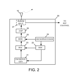- A system employing frequency-hopping electromagnetic signals and multiple receiver antennae to compute phase differences, allowing for accurate position tracking by calibrating phase integrity across various frequencies and skipping channels with interference, ensuring signal integrity and reducing multipath effects.