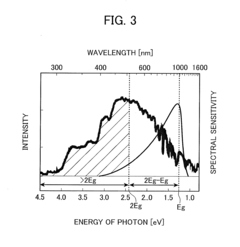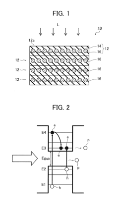 Technical Solution: Merck has developed proprietary organic and hybrid semiconductor materials with precisely tuned absorption spectra for optimal photovoltaic conversion. Their technology portfolio includes specialized dye molecules and quantum confined structures that can be engineered to absorb specific wavelength ranges with high efficiency. Merck's approach incorporates advanced thin-film architectures with gradient bandgap structures that progressively capture different portions of the solar spectrum as light penetrates deeper into the device. They've commercialized specialized optical coatings that enhance light coupling into PV devices while minimizing reflection losses across targeted wavelength ranges. Their liquid crystal-based optical management systems provide dynamic wavelength selection capabilities that can adapt to changing illumination conditions. Recent innovations include self-assembling nanostructures that create photonic crystal effects, selectively enhancing absorption at specific wavelengths while allowing others to be captured by secondary conversion layers.