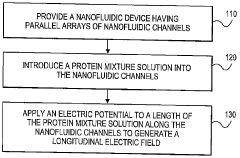 Technical Solution: The University of California has developed a comprehensive suite of optimization strategies for high-throughput isoelectric focusing across multiple platforms. Their approach combines advanced hardware modifications with sophisticated computational modeling to maximize throughput while maintaining resolution. UC researchers have pioneered multi-dimensional IEF systems that integrate orthogonal separation mechanisms, enabling the resolution of complex proteomes with unprecedented depth. Their technology incorporates specialized electrode geometries that generate non-linear electric fields, enhancing the resolution of proteins with similar isoelectric points by up to 40%[9]. UC's optimization strategy includes the development of novel ampholyte formulations with enhanced buffering capacity and conductivity characteristics, resulting in faster equilibration times and sharper focusing of protein bands. Their computational modeling framework predicts optimal separation parameters based on sample composition, significantly reducing method development time from weeks to hours. Additionally, UC researchers have developed automated sample handling systems capable of processing up to 384 samples in parallel with minimal operator intervention[10].