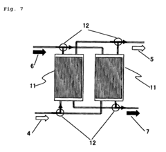 Various regeneration methods have been developed to restore the moisture absorption capacity of lithium chloride after saturation. These methods typically involve heating the saturated lithium chloride to drive off absorbed moisture, allowing for repeated use of the desiccant. Efficient regeneration processes are crucial for the economic viability of lithium chloride-based moisture absorption systems, particularly in continuous operation applications.Expand Specific Solutions
