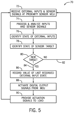 Proximity sensors in mobile and wearable devices require specialized integration techniques to function effectively within limited space constraints. These implementations often combine multiple sensing technologies in a single package to provide comprehensive environmental awareness. Key aspects include miniaturization of sensor components, fusion with other sensors like ambient light sensors, and specialized placement to avoid interference from device components. The integration also addresses challenges of operating through various materials and protective covers while maintaining accuracy and responsiveness.Expand Specific Solutions05 Industrial and automotive proximity sensing applications