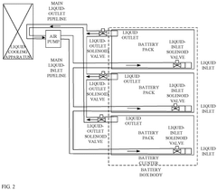 Technical Solution: Toyota has developed a sophisticated approach to AGM battery heat dissipation, focusing on both active and passive cooling techniques. Their system incorporates a dual-layer cooling structure, where a coolant circulates through channels surrounding the battery cells, while a secondary air cooling system manages the overall battery pack temperature. Toyota's design also includes phase-change materials (PCMs) integrated into the battery structure, which absorb excess heat during high-load operations and release it gradually during cooler periods. This helps maintain a more consistent battery temperature, reducing thermal stress on the cells. Furthermore, Toyota has implemented advanced thermal modeling and simulation techniques to optimize the placement of cooling channels and heat-dissipating materials within the battery pack, ensuring uniform temperature distribution[3][4].