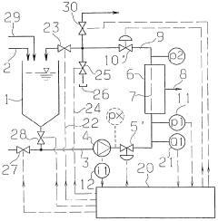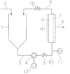 Technical Solution: Sartorius AG has developed advanced crossflow velocity optimization systems for ultrafiltration processes that utilize tangential flow filtration (TFF) technology. Their approach incorporates automated transmembrane pressure (TMP) control systems that dynamically adjust crossflow velocities based on real-time monitoring of filter performance metrics[1]. The company's SARTOFLOW® Smart platform integrates computational fluid dynamics modeling to predict optimal crossflow velocities for different feed solutions, reducing membrane fouling while maintaining high filtration efficiency[2]. Their technology employs pulsatile flow patterns that create turbulence at the membrane surface, effectively minimizing concentration polarization—a key factor limiting ultrafiltration performance[3]. Sartorius has also pioneered the implementation of diafiltration optimization algorithms that automatically adjust crossflow velocities during different process phases to maximize yield while reducing buffer consumption by up to 30%[4].