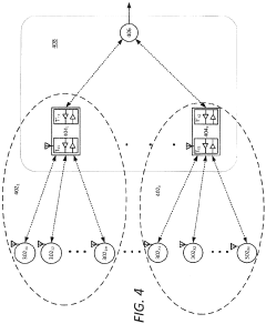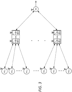 - A three-tier hierarchical network structure with dual data transceivers in master nodes allows for concurrent communication with sensor and top-level nodes, using wireless and wired transceivers to facilitate faster data acquisition and reduce data acquisition time by distributing communication loads effectively.