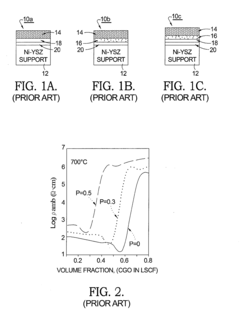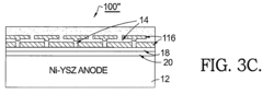 - A segmented electrode structure is introduced, comprising a first mixed ionic and electronic conductor layer and a second layer with higher ionic conductivity, laterally discontinuous to enhance ionic and electronic paths, along with an ionic conducting layer and functional layers to improve connectivity and resistance to poisons.