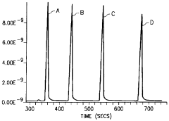 The type of carrier gas used in GC-MS significantly affects peak shape and separation efficiency. Common carrier gases include helium, hydrogen, and nitrogen, each with different properties. Helium provides good resolution and peak shapes for most applications, while hydrogen offers faster analysis times but may cause peak distortion for certain compounds. The selection of appropriate carrier gas based on analyte properties, column specifications, and detector compatibility is essential for optimizing peak shapes in GC-MS analysis.Expand Specific Solutions03 Electronic pressure and flow control systems for improved peak shape